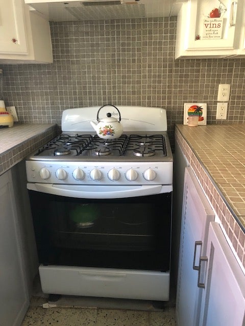 Fully equipped kitchen with full size stove / oven and large refrigerator.