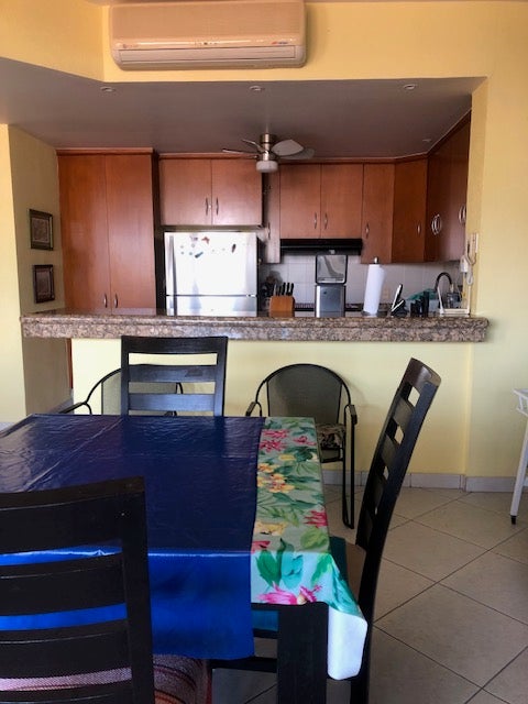 The condo has ceiling fans and mini-split air conditioning.