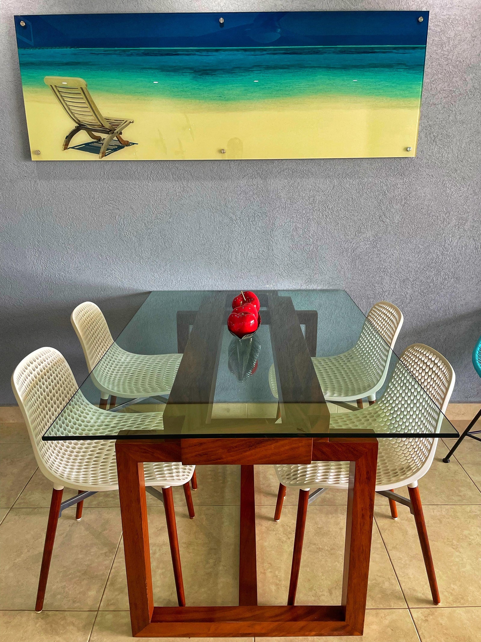 Dining room seats 4. There is a new double sofa bed in the living room.