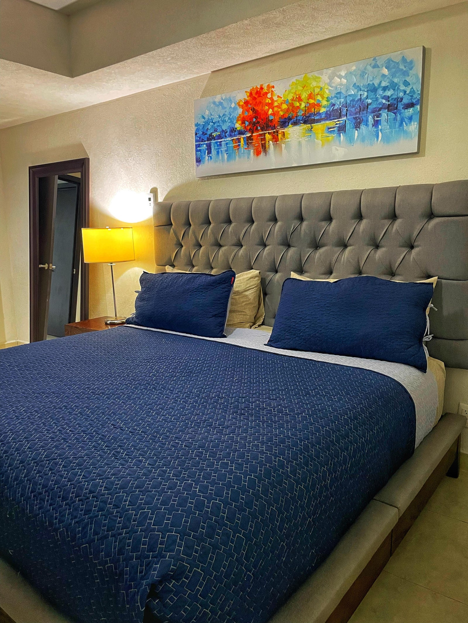 The bedroom has a king bed, 2 closets.