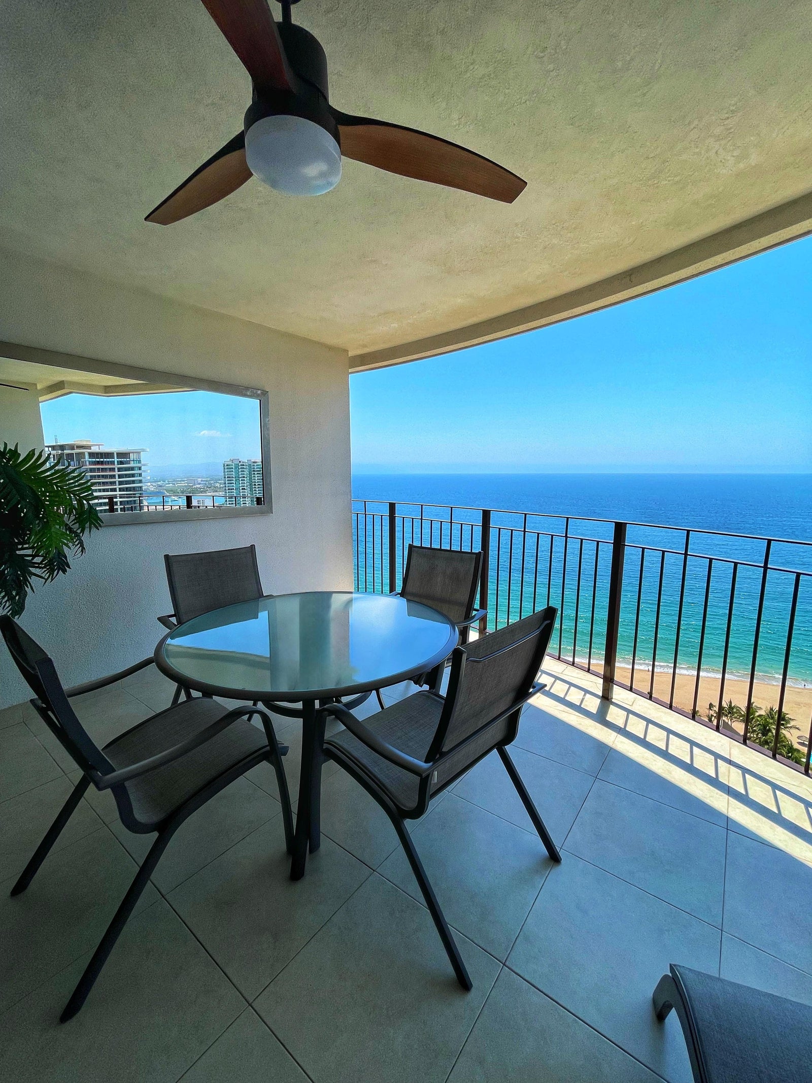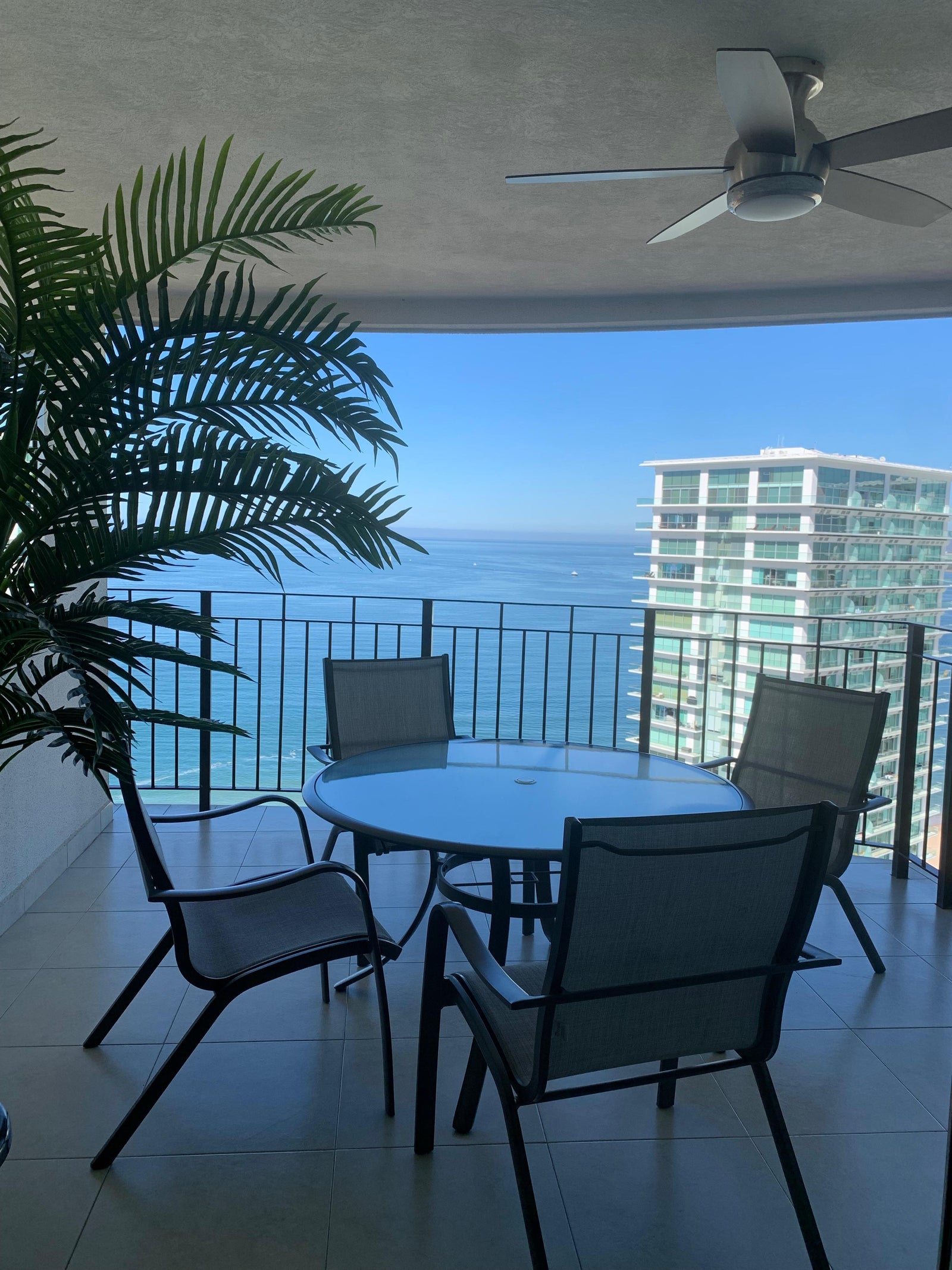 Condo Rafael is a one bedroom, one bath condo in the Grand Venetian complex on the beach in the Hotel Zone. It is in Tower 3, 24th floor, with balcony facing the ocean. The condo is fully air conditioned and has ceiling fans.